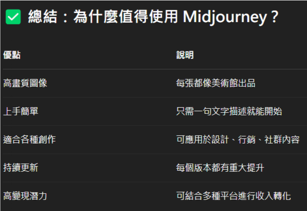✅ 總結:為什麼值得使用 Midjourney?